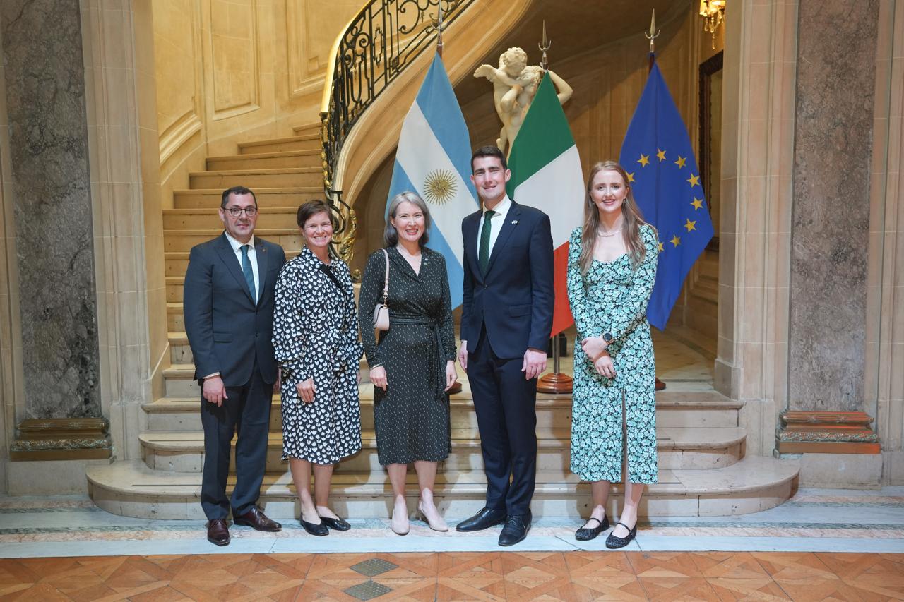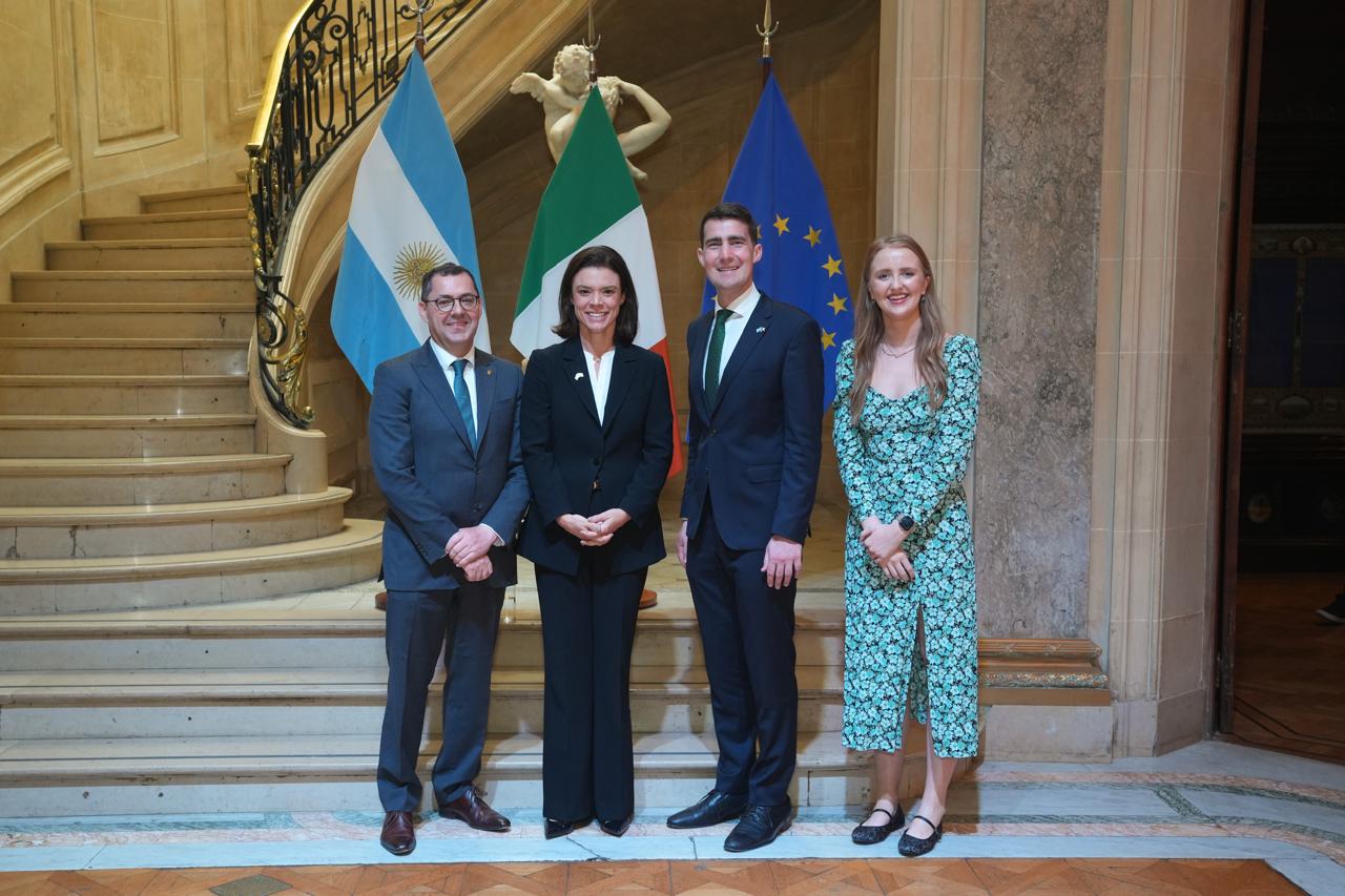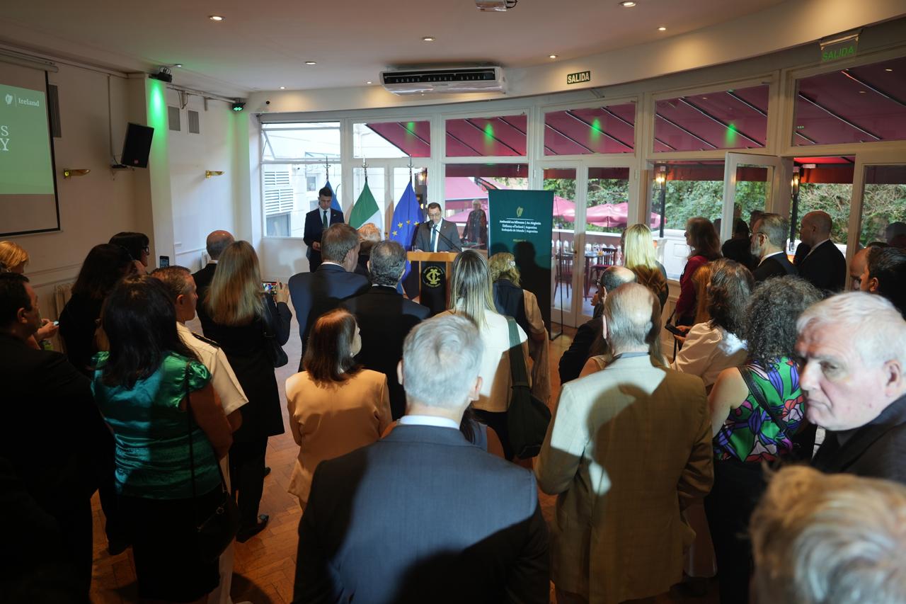 El Ministro de Gasto Público, Infraestructura, Reforma y Digitalización de Irlanda, Jack Chambers, concluyó su visita oficial a Argentina participando en la celebración del Día Nacional – Fiesta de San Patricio organizada por la Embajada de Irlanda en Buenos Aires. Chambers es uno de los 38 representantes del gobierno irlandés que visitan más de 90 ciudades en 42 países esta semana, como parte de las celebraciones anuales del Día de San Patricio de Irlanda. Durante su estadía en Buenos Aires, el Ministro se reunió con sus contrapartes argentinas, representantes de organizaciones multilaterales, de la sociedad civil y líderes empresariales para fortalecer los lazos bilaterales. El Ministro también interactuó ampliamente con la comunidad irlandesa-argentina, la más grande de América Latina, en los festejos del Día de San Patricio, orientados a promover la cultura irlandesa y a honrar la histórica contribución de los irlandeses en Argentina.