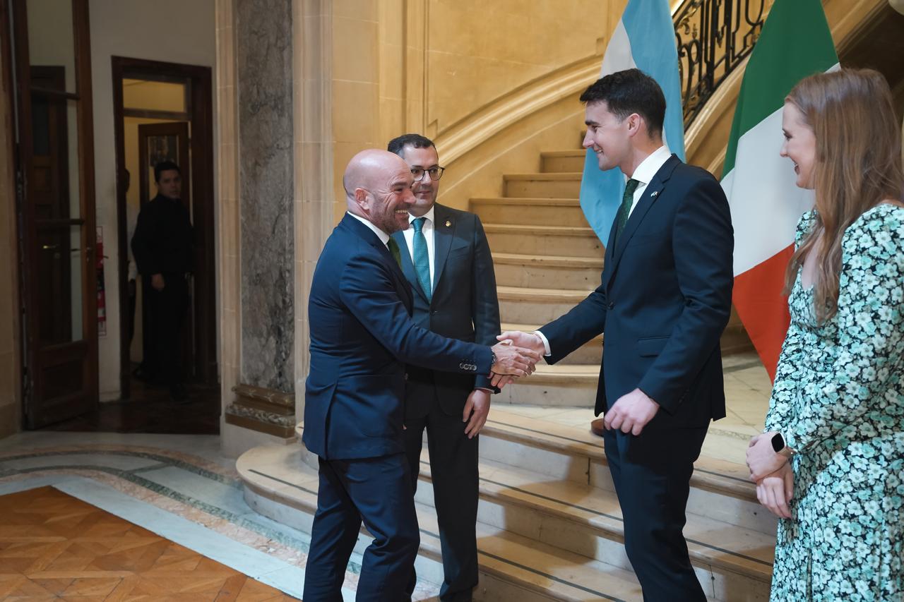 Uno de los momentos destacados del programa del ministro fue su participación en los festejos del Día de San Patricio en Buenos Aires, incluyendo un desfile en la histórica Plaza San Martín organizado por la Asociación Argentino Irlandesa Almirante Brown. Además, visitó el Hurling Club, un centro cultural y deportivo clave para la comunidad irlandesa-argentina, donde las nuevas generaciones de argentinos tienen la oportunidad de practicar deportes irlandeses, como el fútbol gaélico. “Argentina alberga una de las comunidades más grandes de la diáspora irlandesa en el mundo. Apoyar a nuestra diáspora es una prioridad del Gobierno de Irlanda, por lo que es un gran privilegio ver cómo nuestra cultura y tradiciones siguen tan vivas aquí”, expresó Jack Chambers: DISCURSO DEL MINISTRO JACK CHAMBERS COMPLETO