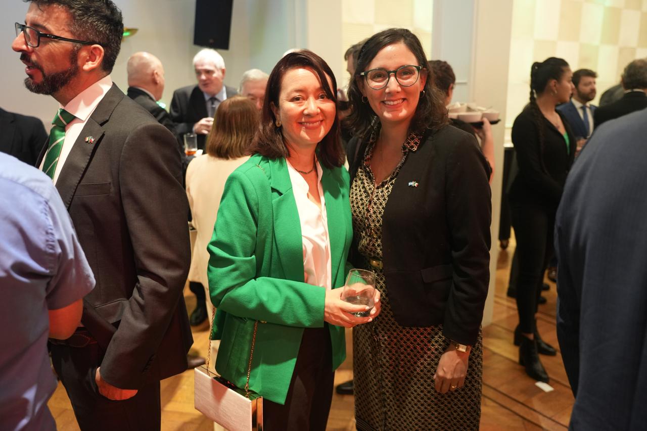 La Ministra Plenipotenciaria y Encargado de Negocios Inés Herrera de la Embajada de Colombia junto a la Consejera Camila del Carmen Aviña de la Embajada de México