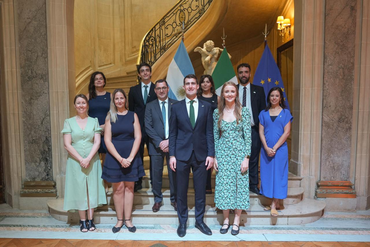 El Ministro Jack Chambers junto al Embajador Gerard McCoy y el equipo de la Embajada de Irlanda en la Argentina en la recepción brindada en el Circulo Italiano
