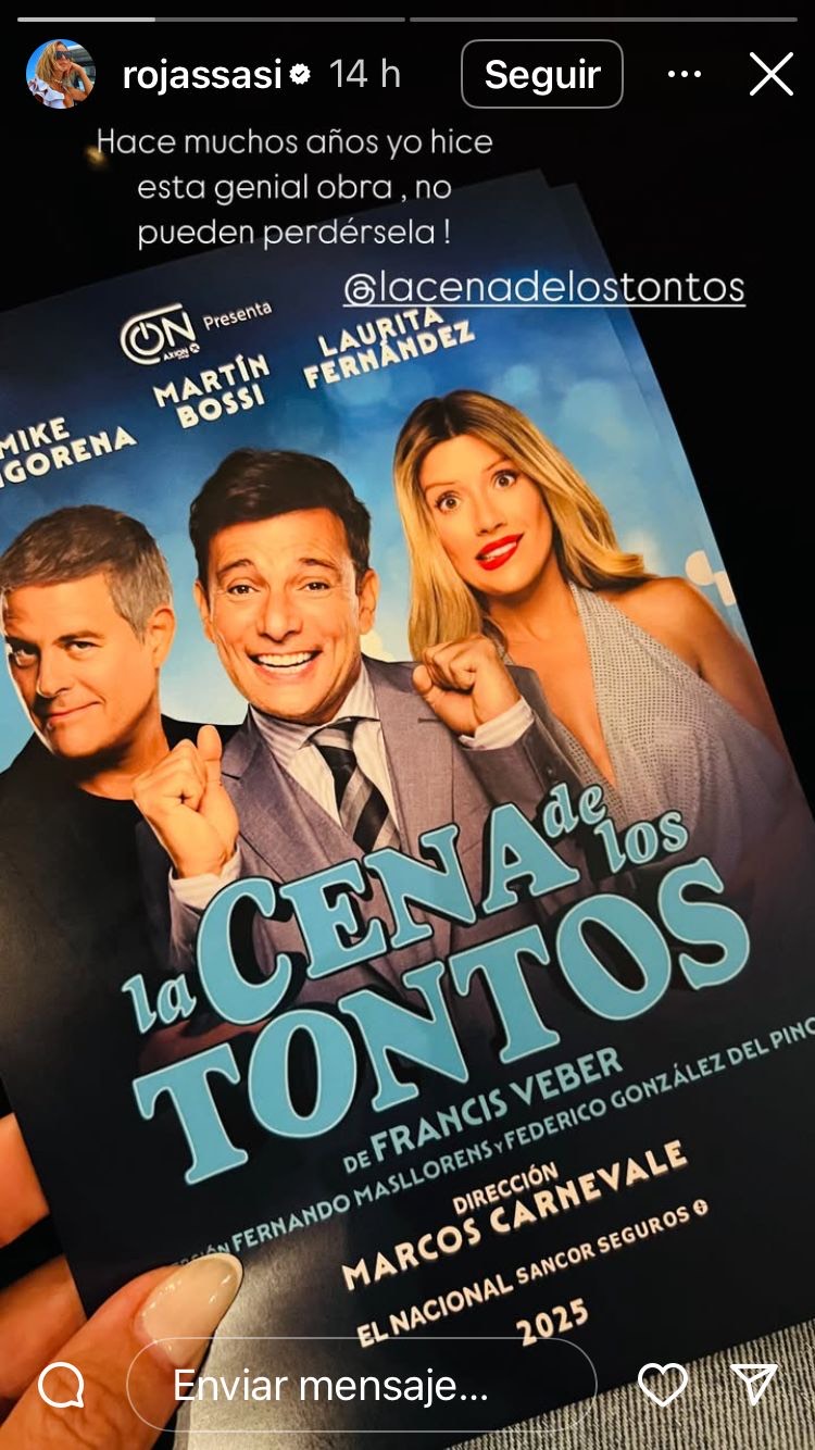 Ubicada en en la fila 5 la actriz rió a carcajadas con las ocurrencias y guiños del actor y al finalizar la función aplaudió de pie a Martín Bossi y al resto del elenco. Martín Bossi desde el escenario le dedicó la función a Sabrina Rojas y al término de la función y acompañada por el productor teatral Román Vargas, Sabrina Rojas fue al camarín para saludar a Bossi y al resto del elenco.