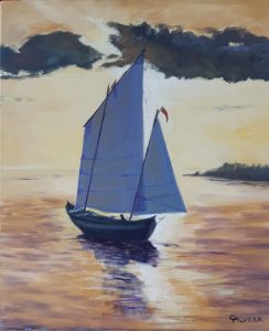 Cora Alvear, quien también cursó estudios en Escuela Nacional Pridiliano Pueyrredón, traslada su fascinación por los cielos y el agua hecha poesía para su arte reunido entre óleos y acuarelas con especial fascinación por la luz, el transmutar y el tiempo: