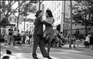 Ana Ventura y Fermín Juarez bailando en una plazoleta de París